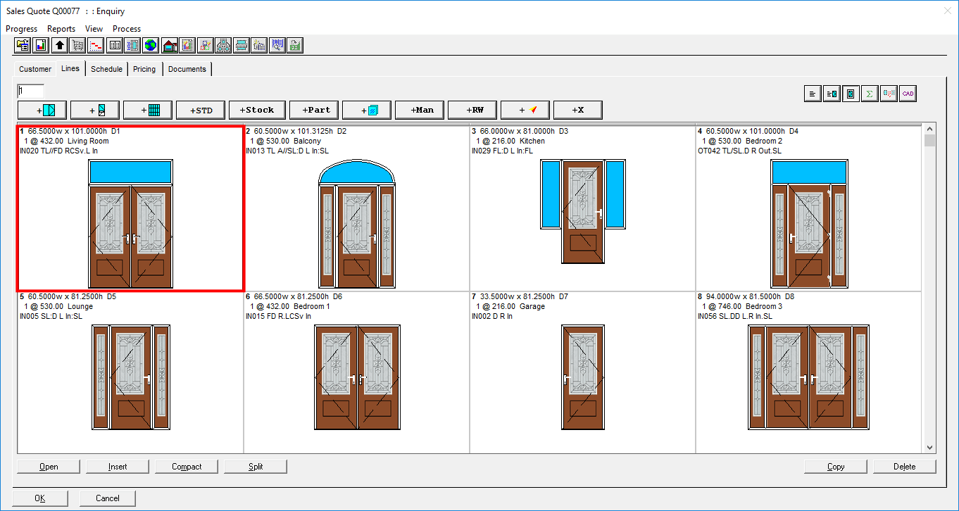 The standard products option allows you to select sales line using product code and eliminates manual work of updating the product details. This speeds up the processes and minimizes errors. Setup standard products with individual product codes. This allows the product code to be displayed on batch processing reports such as the assembly list, Order Detail and Customer documents.